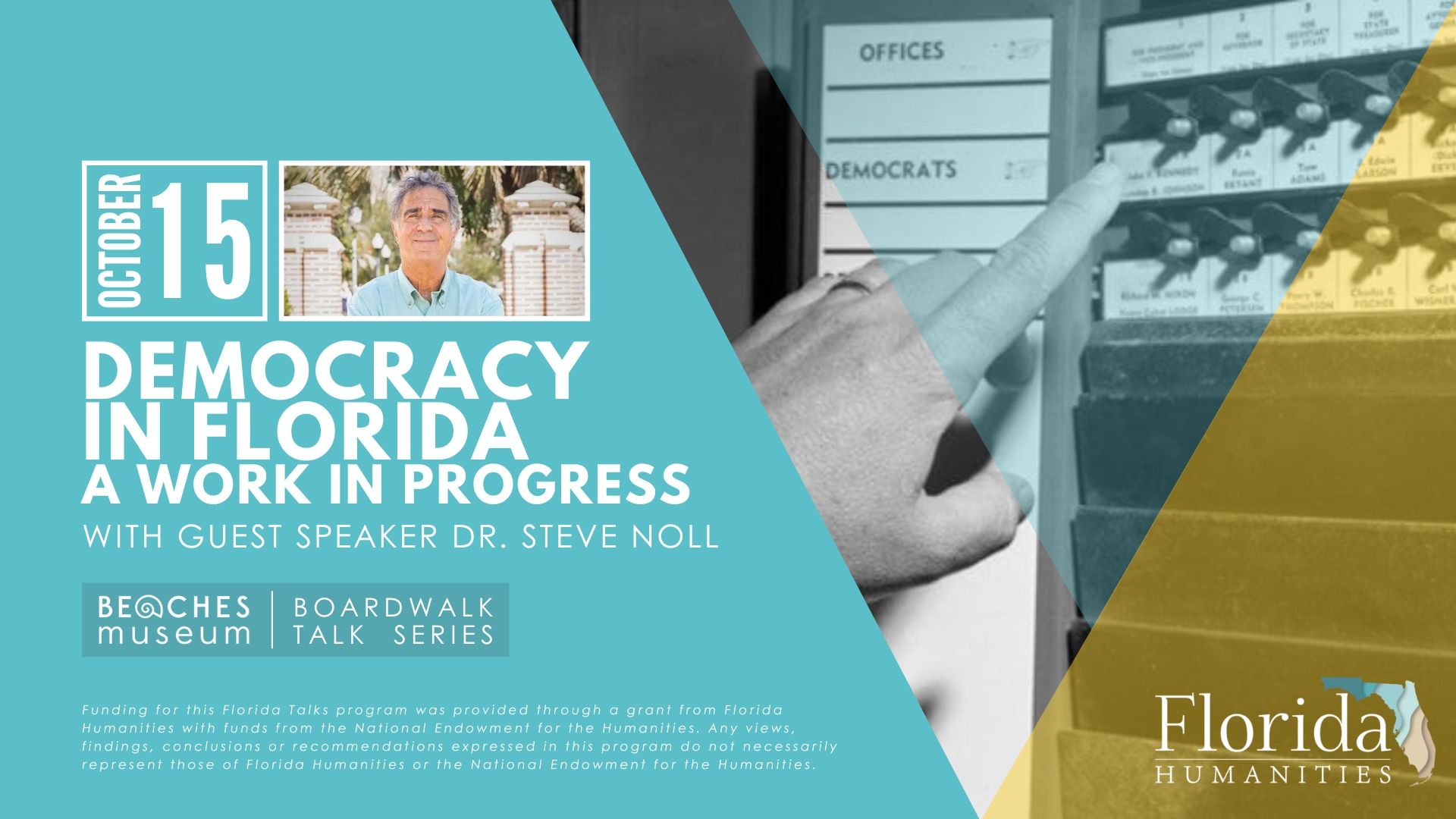 Funding for this program was provided through a grant from Florida Humanities with funds from the National Endowment for the Humanities. Any views, findings, conclusions or recommendations expressed in this program do not necessarily represent those of Florida Humanities or the National Endowment for the Humanities