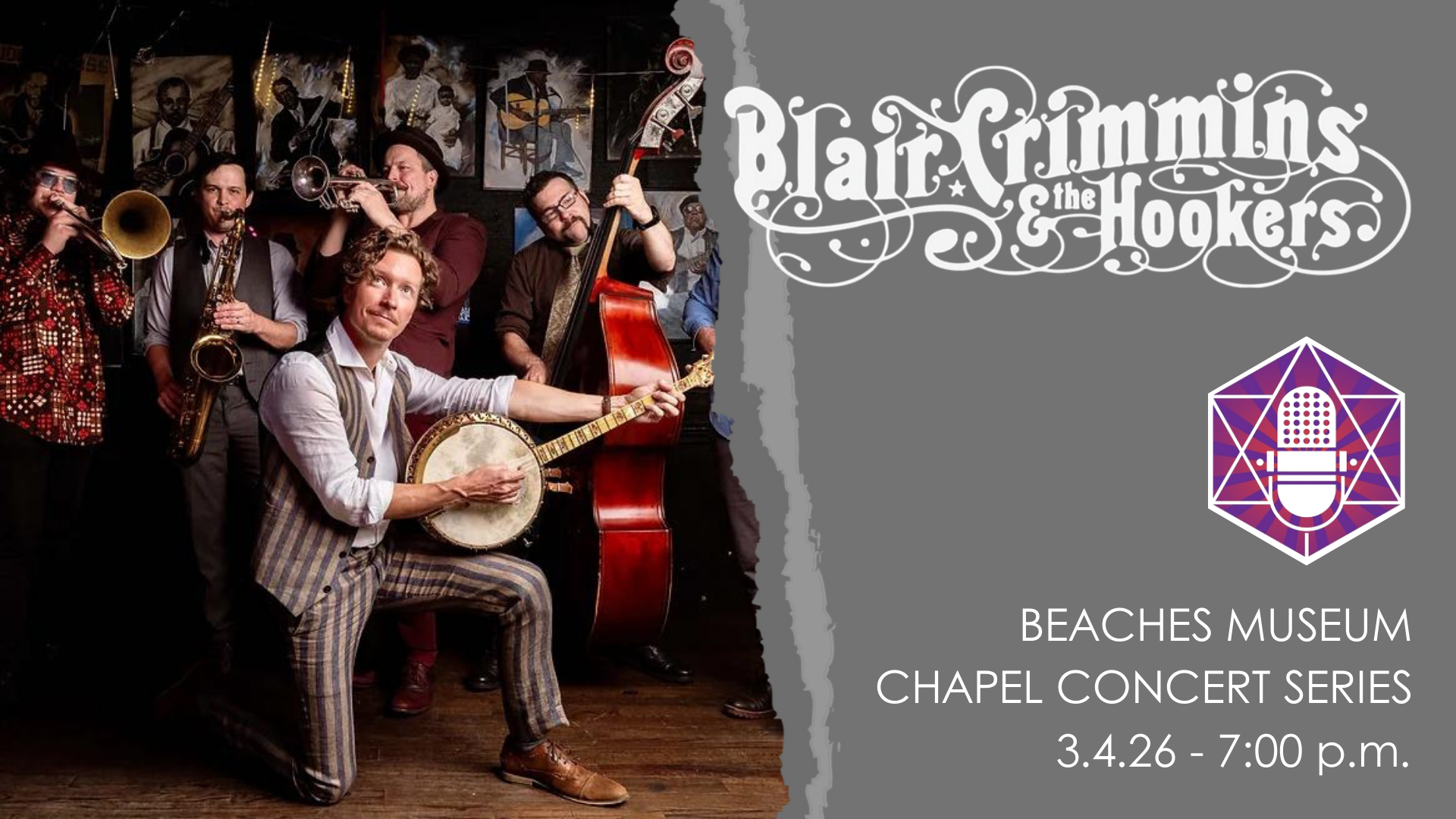 The Beaches Museum Concert Series continues with Blair Crimmins and the Hookers on Wednesday, March 4 at 7:00 p.m.